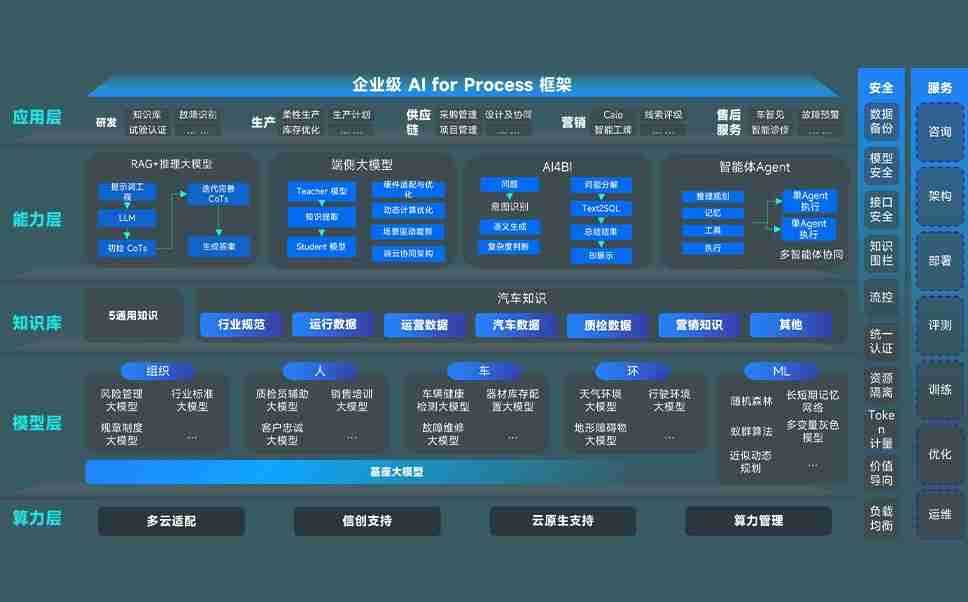 彩虹多多问学智车解决方案是一套基于AI技术的汽车行业智能化系统,,,覆盖从底层算力到顶层AI应用的全栈方案。。。方案由算力层、、、模型层和应用层组成:算力层,,,方案支持多种一体机配置,,,,具备云端灵活部署、、、、多云适配以及动态优化计算资源的能力;模型层,,彩虹多多问学平台版提供了企业级AI应用一站式构建与管理平台,,,支持基于后训练强化技术的汽车企业专属模型的训练、、、评测和运营;应用层,,彩虹多多问学DeepSeek版提供包括超级员工、、智能招采、、、智能营销、、智能客服、、、AI for BI等一系列解决方案,,,可助力汽车行业实现数字化转型,,,让管理更智能、、、、响应更敏捷。。